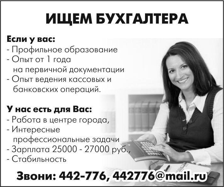 • Ваше объявление должно быть удобно для чтения, а именно: сам шрифт, его размер, объем информации сопоставим с размером объявления. Помните, что цель вашего объявления это звонок соискателя. Вам нужно его привлечь, а детали вы обсудите по телефону или при личном интервью.
