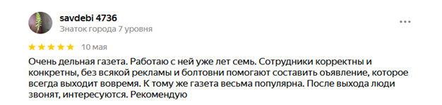 Особенно нам нравится оперативность в работе менеджеров газеты «Рабочие места», вежливое общение. При поиске сотрудников издание выбираем так, чтобы устраивала цена, чтобы предоставляли скидки. У газеты «Рабочие места» это все есть: цена для нас очень подходит!